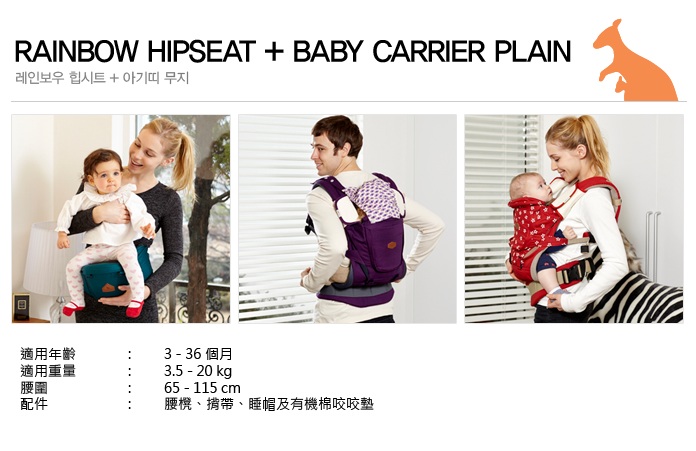 配件包括: 腰櫈, 揹帶, 睡帽及有機棉咬咬墊